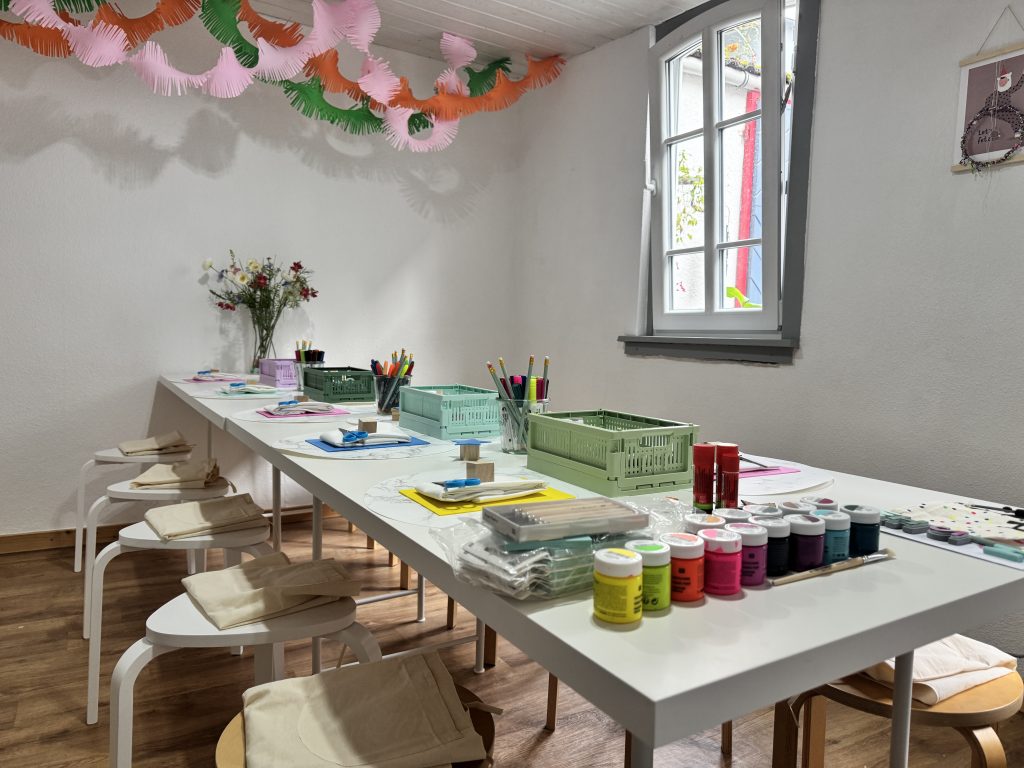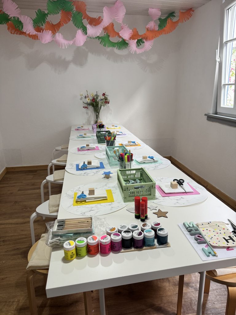 Keine Langeweile, kein Bastelchaos! Bei uns wird gefeiert, gelacht und gestaltet. Ganz ohne Bastelstress, dafür mit jeder Menge Spaß und Ideen. Gemeinsam wird ausprobiert, gemischt und kreativ drauf los gewerkelt.